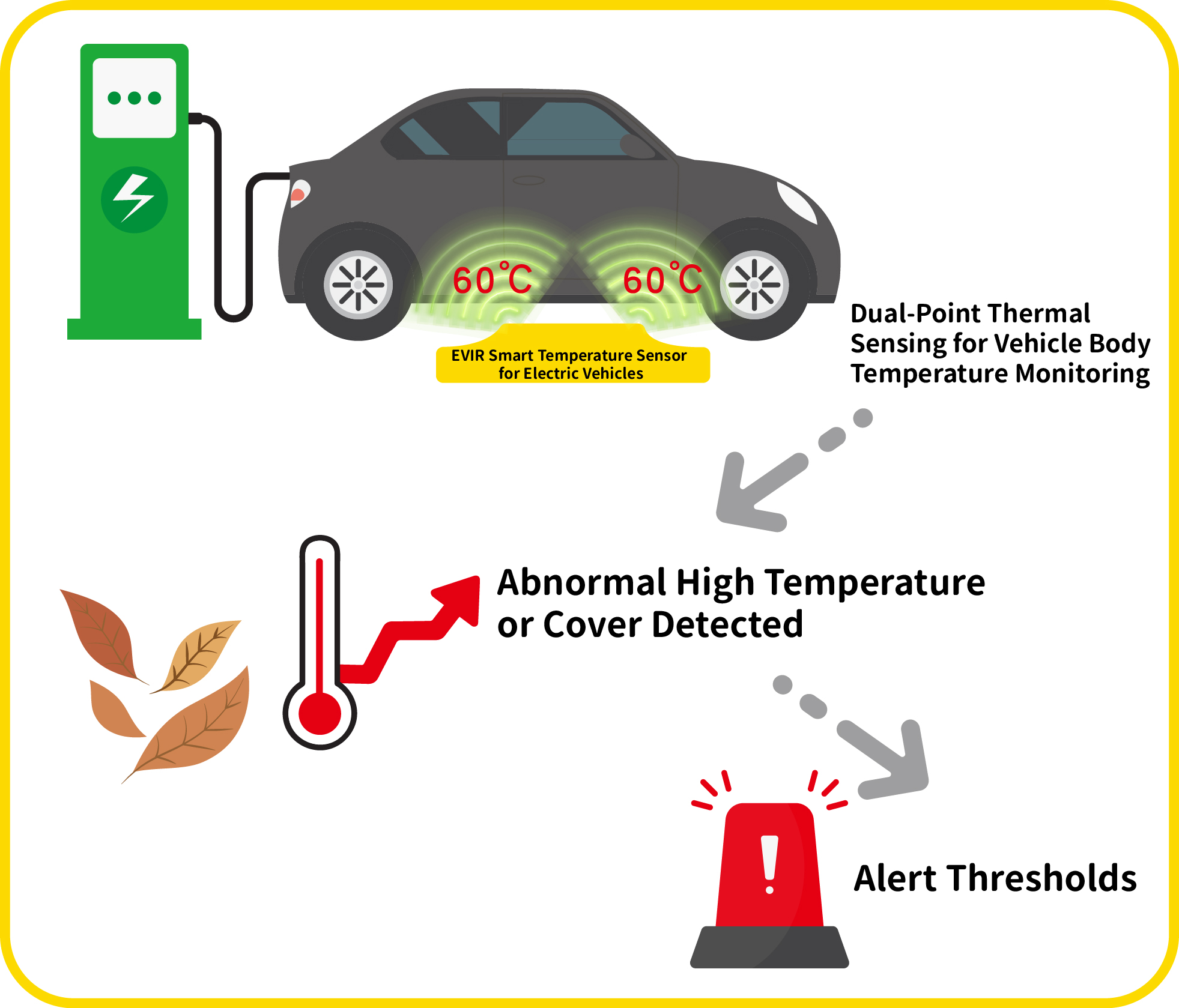 Precise Monitoring :Ground-mounted installation accurately detects temperature changes in the chassis battery.